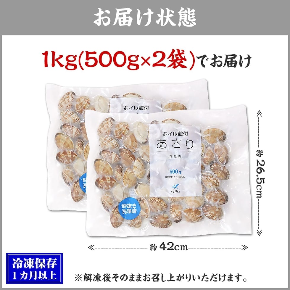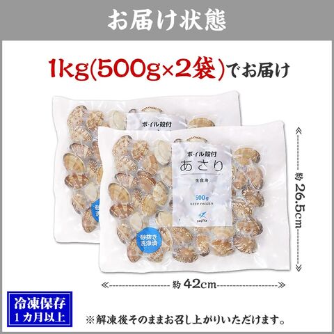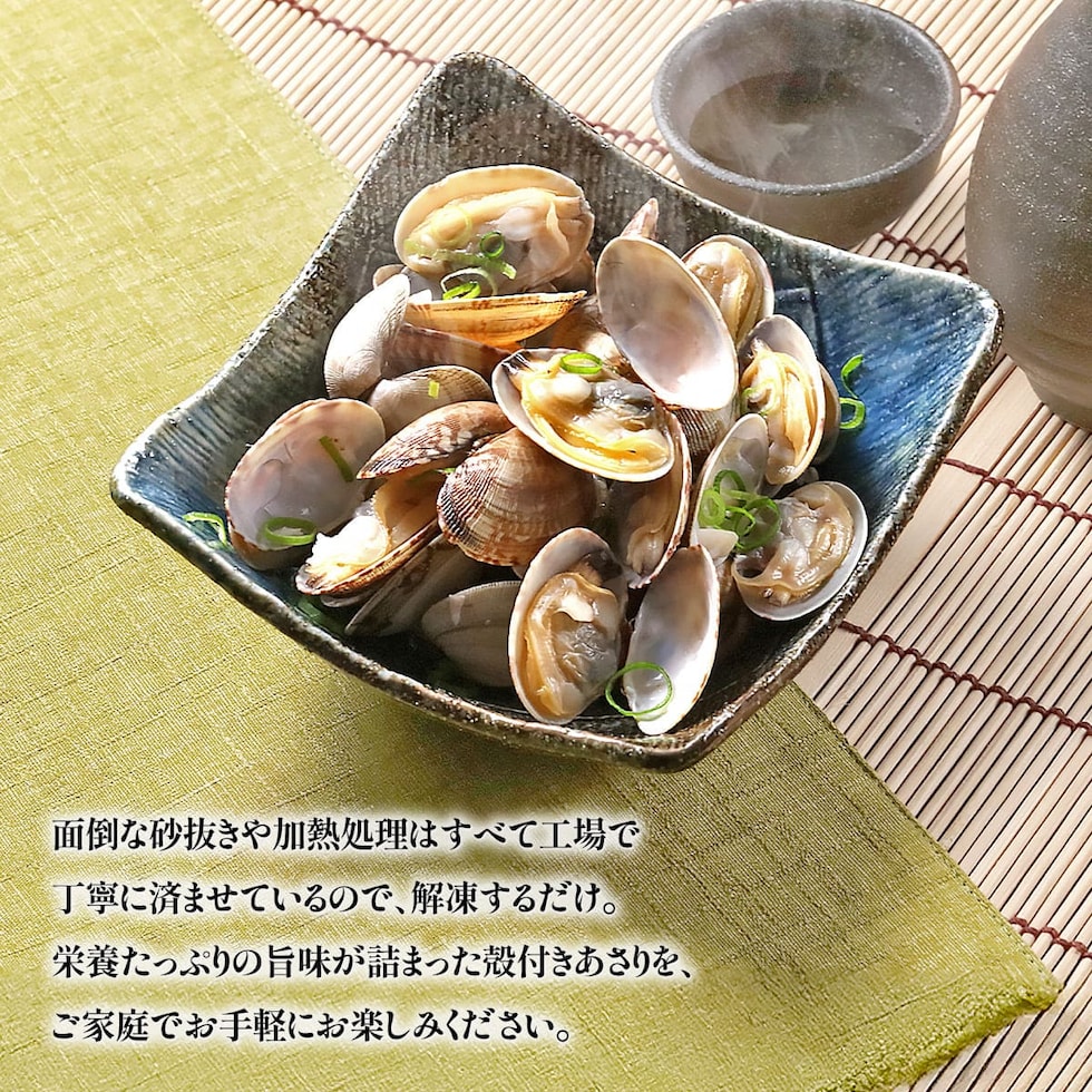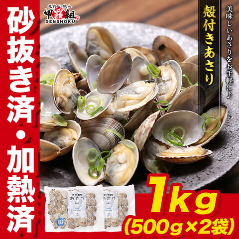 殻付き あさり 1kg(500g×2袋) 砂抜き済 加熱済 Lサイズ 高たんぱく 低脂質 浅利 酒蒸し ビタミン 鉄分 カルシウム 味噌汁 晩御飯 お弁当 弁当 パスタ 冷凍食品 健康 海鮮 お得 オトク 貝 かい 砂出し済 砂出済 グルメ 海鮮 時短 簡単 年末年始 お歳暮