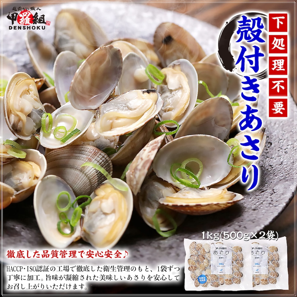 殻付きあさり 1kg(500g×2袋) <原材料>あさり(中国) |