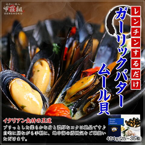殻付ボイルムール貝(ガーリックバター味) 454g(25-35粒入り) ※産地:チリ産 |