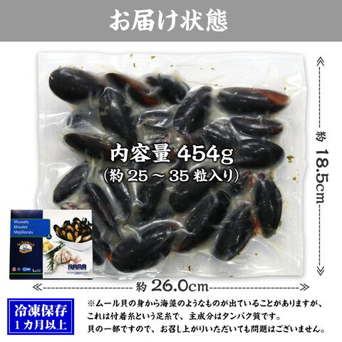 イタリアン食材の王道!【訳あり(不揃い/殻欠け)】ボイル済み ガーリックバター ムール貝(ボイル/殻付き)454g(25-35粒入り) 貝 殻付き パスタ パエリア ブイヤベース 下処理済み パーティ ピザ おつまみ 冷凍 おつまみ