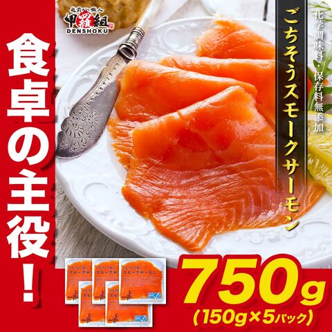 ごちそうスモークサーモン750g(150g×5パック) 鮭 サケ さけ 燻製 無添加 正規品 贈り物 誕生日 スモークサーモン サーモン おつまみ サラダ パスタ サーモントラウト パーティ 年末年始