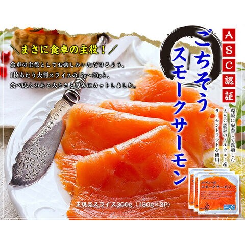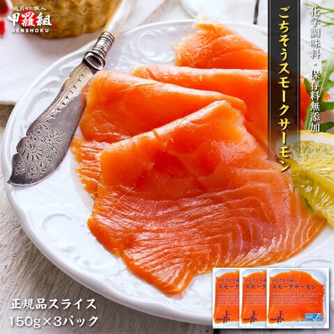 ごちそうスモークサーモン 150g ×3(450g) 鮭 サケ さけ 燻製 無添加 正規品 贈り物 誕生日 スモークサーモン サーモン おつまみ サラダ パスタ サーモントラウト パーティ 年末年始 正月 お歳暮