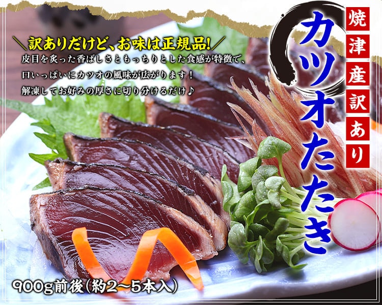 訳ありカツオたたき (生食用)900g前後(約2~5本入) 焼津 焼津産 海鮮 刺身 鰹 かつお カツオ たたき タタキ 国産 タレ付き 冷凍食品 年末年始 お歳暮 冬ギフト