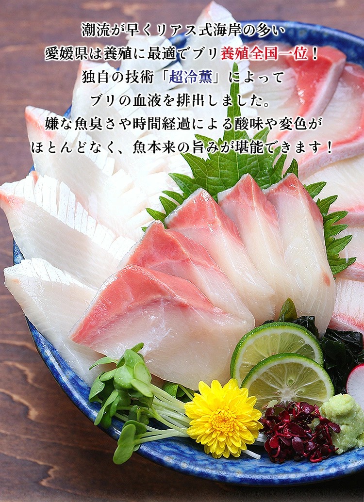 独自の技術「超冷薫」によって、ブリの血液を排出!嫌な魚臭さや時間経過による酸味や変色がほとんど無く、魚本来の旨みが堪能できます! |