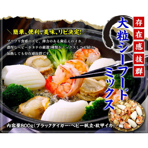 甲羅組オリジナル【大粒&高級】シーフードミックス800g(ブラックタイガー/ベビー帆立/紋甲イカ)紋甲いか イカ エビ ホタテ 帆立 ほたて いか えび アヒージョ グラタン 中華丼 お好み焼き 焼きそば 冷凍食品