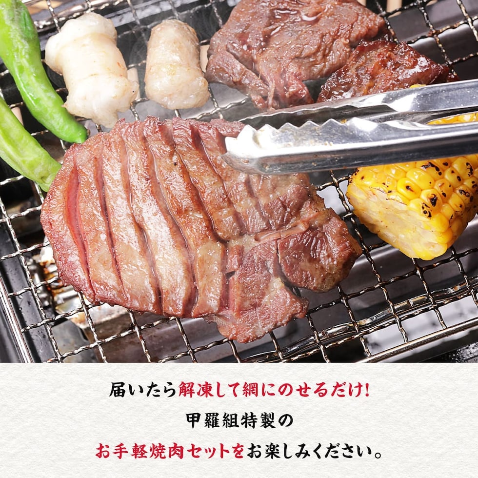 | ◎解凍して焼くだけのお手軽焼肉セット! ◎牛タンステーキ・タレ仕込み牛ハラミ・マルチョウを詰め合わせた食べ応え抜群のセット ◎宅配便に対応しているキャンプ場へのお届けOK! これがあれば面倒な買い出しは一切不要!商品が届いたら、あとは焼くだけ! とっても便利な甲羅組特製のお手軽焼肉セットです。 コリっとした食感と旨みが楽しめる牛タンステーキ、醤油ベースのたれでやわらかく仕上げた牛ハラミ、脂の甘みとぷりっとした食感が魅力のマルチョウを詰め合わせ、食べ応えのある内容に仕上げました。 ご家庭での焼肉はもちろん、キャンプやBBQでも活躍する、満足感たっぷりのセットをぜひご堪能ください! |