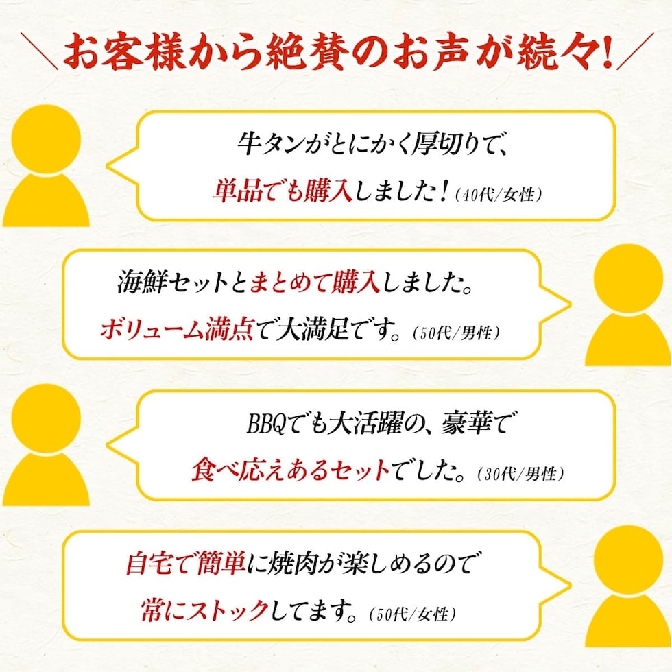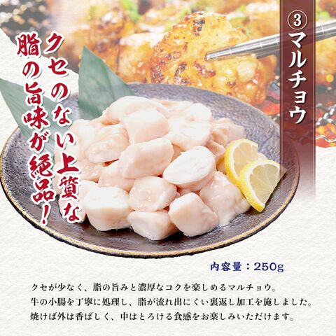 | ●焼肉セット 【1】牛タンステーキ 500g ・<原材料>牛たん(ヨーロッパ産)、塩こしょう、果実調味料、発酵調味液、水飴/調味料(アミノ酸等)、酸化防止剤(ビタミンC)、pH調整剤、(一部に牛肉を含む) 【2】タレ仕込み牛ハラミ 500g×2袋 ・牛ハラミ(オーストラリア産)、醤油(砂糖、乳糖混合ぶどう糖果糖液糖)、しょうゆ、発酵調味料、にんにくペースト、ねぎ、たん白加水分解物、ごま油、寒天、香辛料、酵母エキス/増粘剤(加工デンプン、増粘多糖類)、酸味料、(Na)、トレハロース、調味料(アミノ酸等)、カラメル色素、パプリカ色素、甘味料(キサンタン)、(一部に小麦・牛肉・ごま・大豆を含む) 【3】マルチョウ 250g ・<原材料>マルチョウ(国産) |