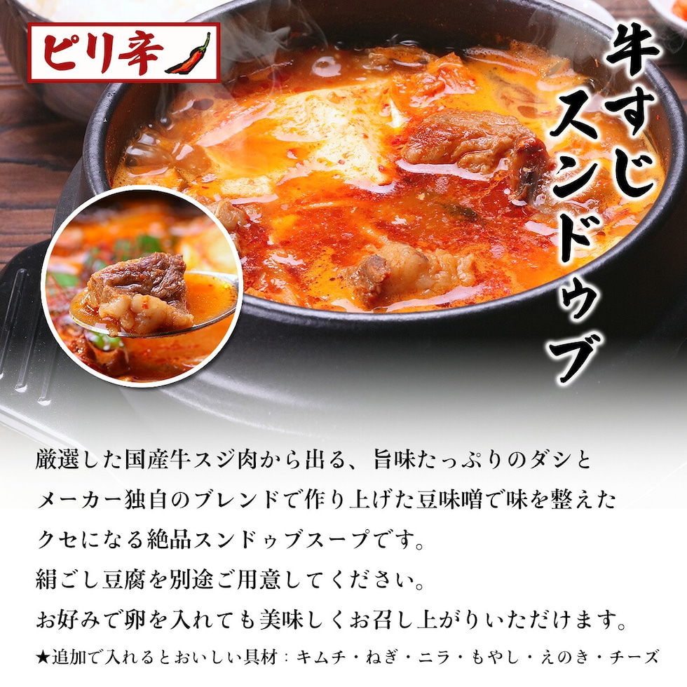 韓国スープ4個セット(牛すじスンドゥブ&煮込み参鶏湯) スジ 肉 鶏 手羽元 ピリ辛 送料無料 冷凍食品 サムゲタン