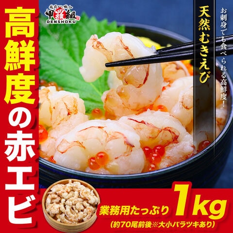 お刺身でも食べれる高鮮度!天然【生】むきえび業務用たっぷり1kg(約70尾※大小バラツキありの訳あり品) 赤エビ アカエビ あかえび 冷凍食品 むき赤えび 海老 年末年始 お歳暮 冬ギフト 正月