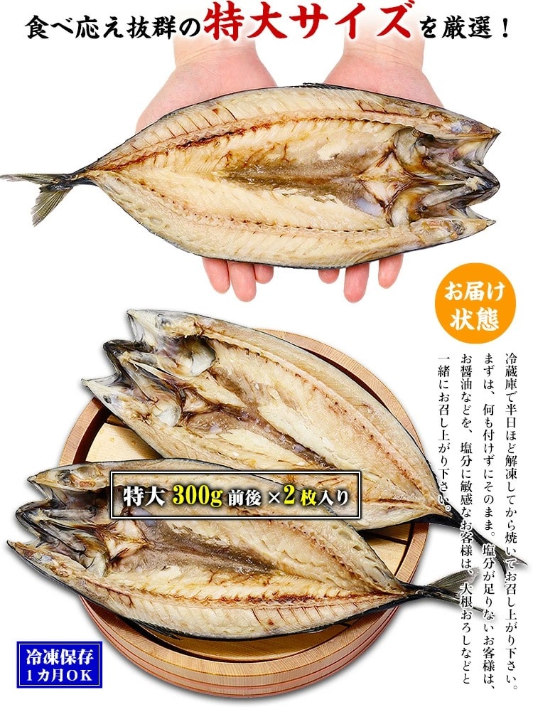 | ノルウェー産とろ塩サバ開き特大サイズ300g以上2枚入り 原材料:サバ(ノルウェー産)、塩、ビタミンC |