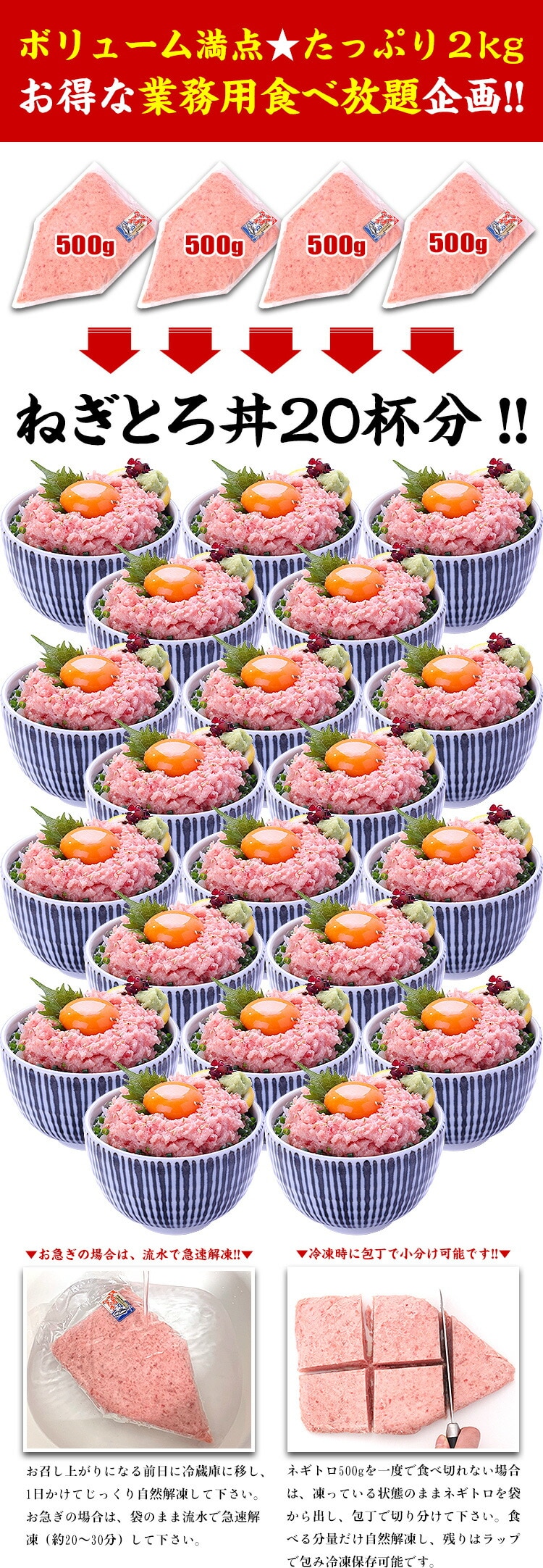 【12/12以降発送】天然マグロたたき 極上ねぎとろ 業務用たっぷり2kg/約20人前(500g×4袋) 食べ放題♪ ネギトロ まぐろ たたき マグロ タタキ 冷凍食品 【12/7以降発送】