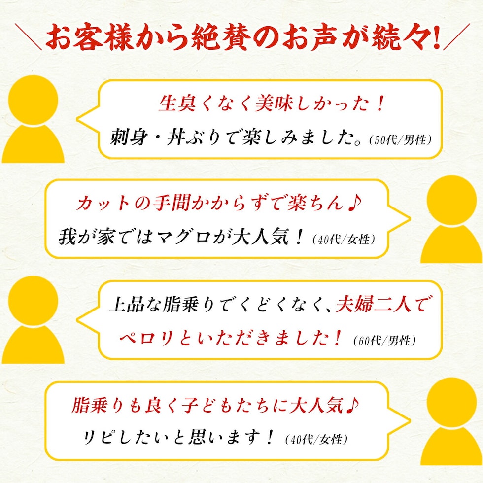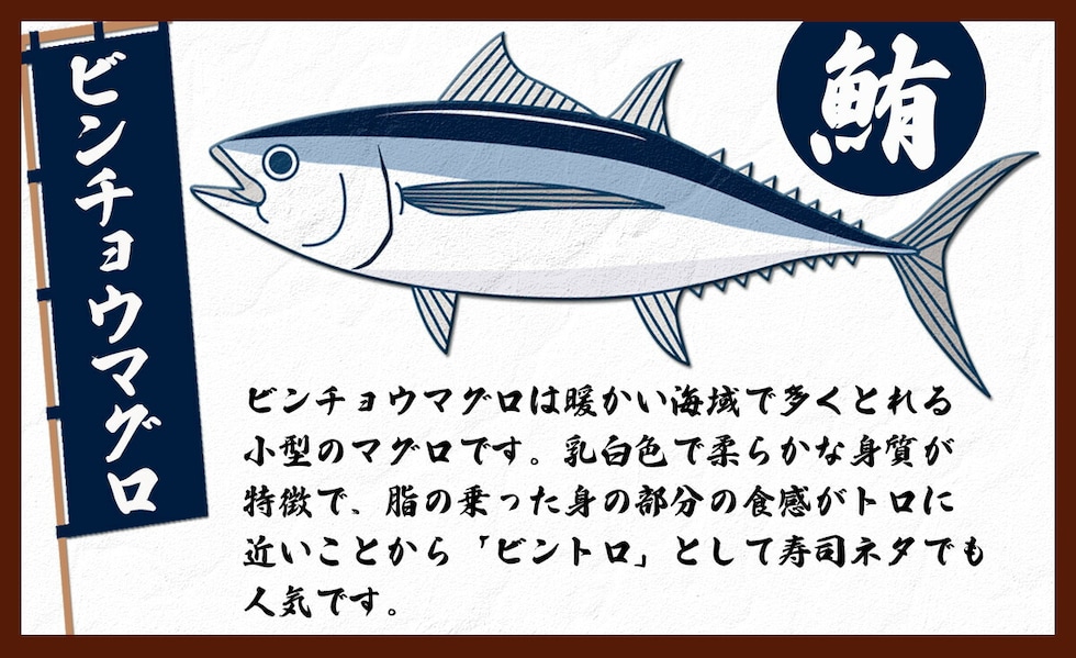 | ビンチョウマグロは暖かい海域で多くとれる小型のマグロです。乳白色で柔らかな身質が特徴で、脂の乗った身の部分の食感がトロに近いことから「ビントロ」として寿司ネタでも人気です。今回ご用意するのは切落し!大きさ・形不揃いとなりますがお味は一級品!面倒なカットは不要、むしろ切れている方が便利で嬉しい♪とのお声も多数いただいております。お刺身はもちろん、海鮮丼、カルパッチョなどでお召し上がりください♪ |