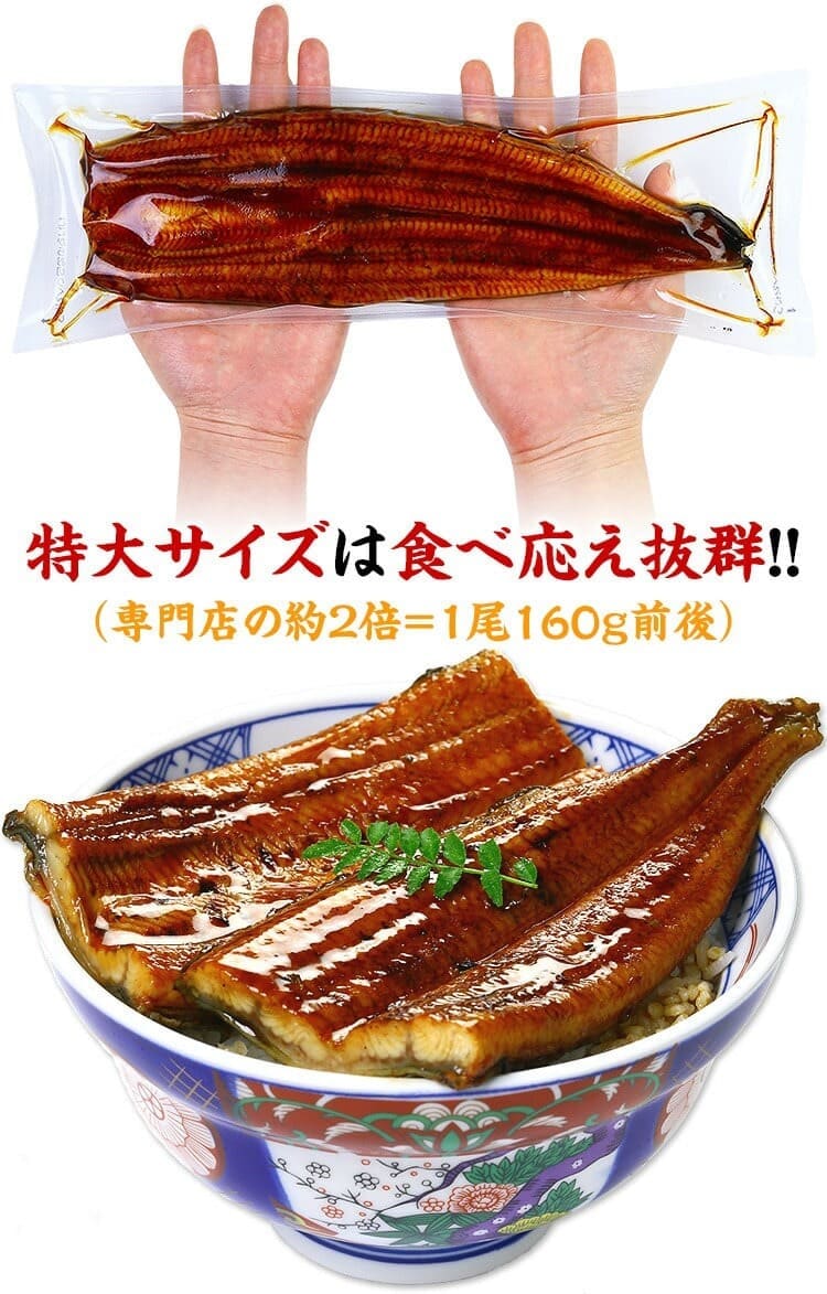 | ふっくらした柔らかさと繊細な味は、まさに専門店の味。大型~特大サイズを厳選しておりますので、お味はもちろん食べ応えも抜群です。おいしさの秘密は「焼き」と「蒸し」の加工にあります。この蒲焼はしっかりと焼いて、よく蒸し上げ、さらに、専用のタレをつけては焼くという工程を4回繰り返すことで、食欲をそそる香ばしさと味わいに仕上がります。たっぷり脂ののった肉厚の極上うなぎ蒲焼きをご家庭でご堪能ください。 |