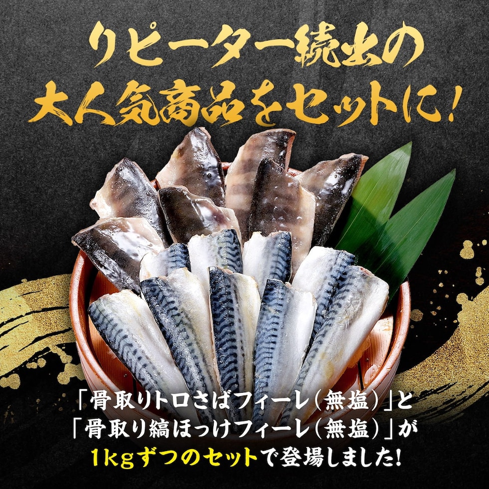 訳あり 【 無塩 骨取り トロさば フィーレ 】&【 無塩 骨取り 縞ほっけ フィーレ 】セット 合計2kg(各1kg) 縞ホッケ ホッケ とろさば とろサバ 鯖 切身 お弁当 おかず 時短 タイパ 便利 詰め合わせ 冷凍食品