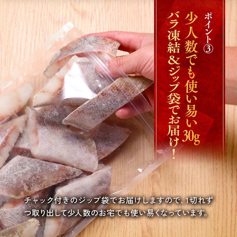 当店の真鱈は骨も鱗も除去済で、1枚ずつ個別に冷凍してあることから