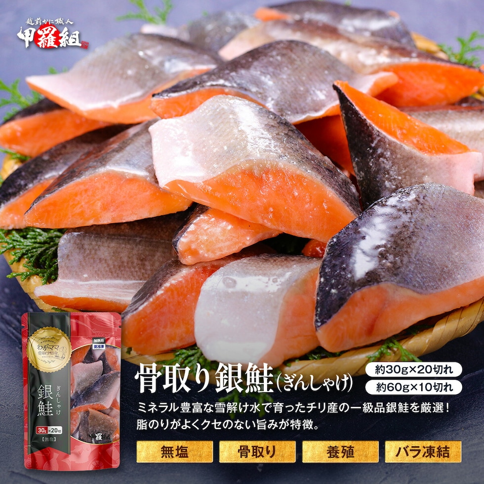 無塩&骨取り銀鮭の切身(30g×20切れ , 60g×10切れ)