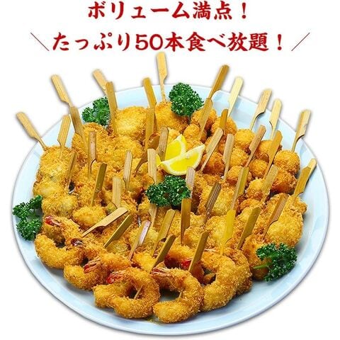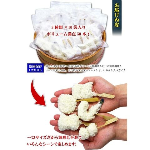 海鮮串揚げ大ボリューム50本(5種×10袋)食べ放題セット(えび/蓮根えび/きす/舌平目おくら巻き/成形いたや貝)海老 年末年始 お歳暮 パーティー 正月