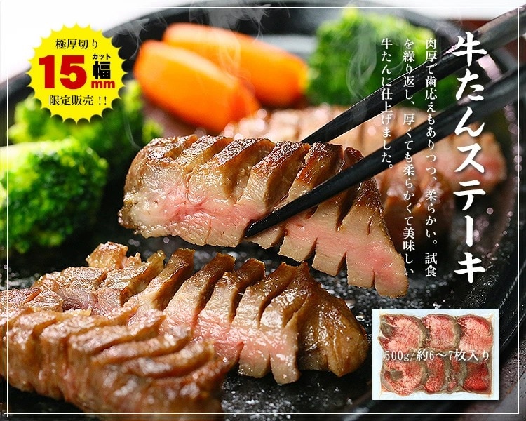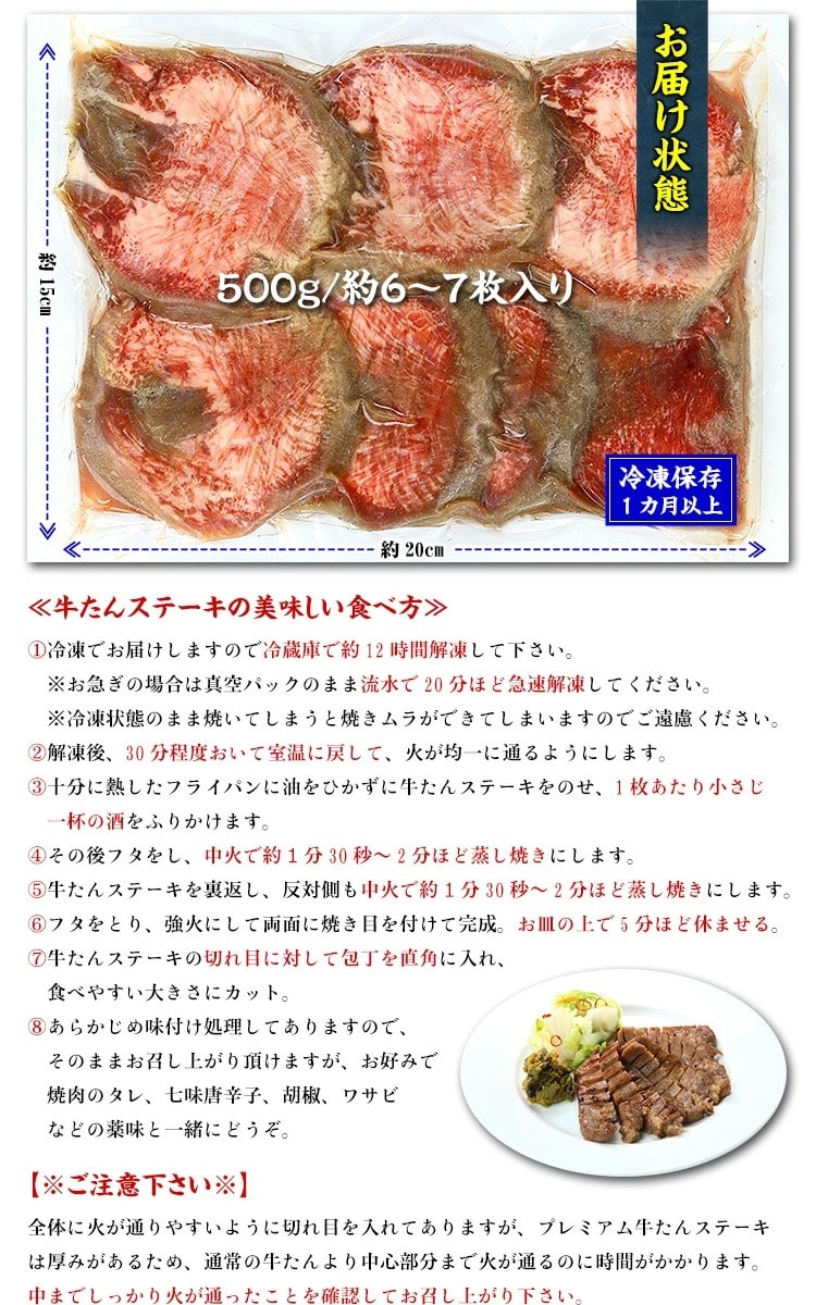 極厚15mmプレミアム牛たんステーキ500g/約6~7枚入り |