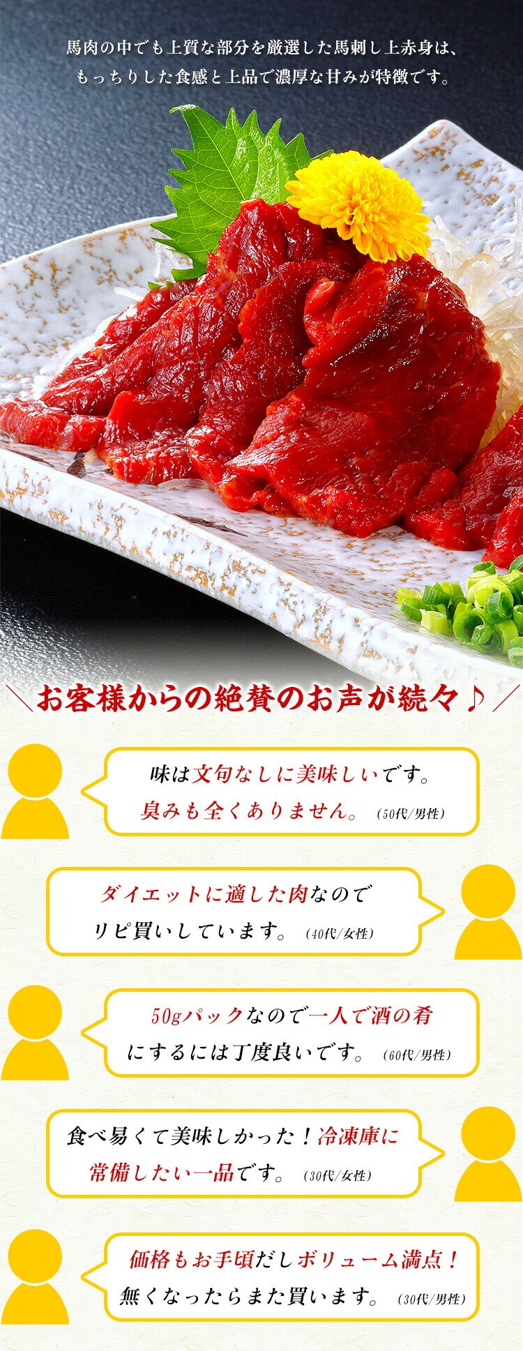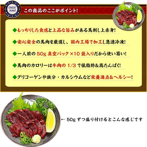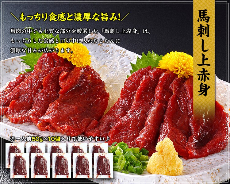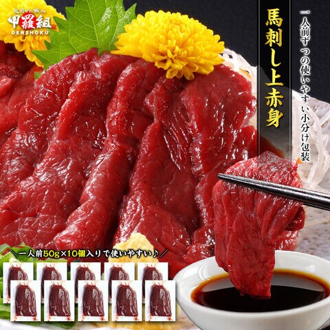 ヘルシー&高級「馬刺し上赤身」500g(50g×10袋入り/約10人前) 馬刺し 馬刺し 馬肉 肉 刺し身 小分け ギフト 赤身 低脂肪 高タンパク ギフト 贈り物