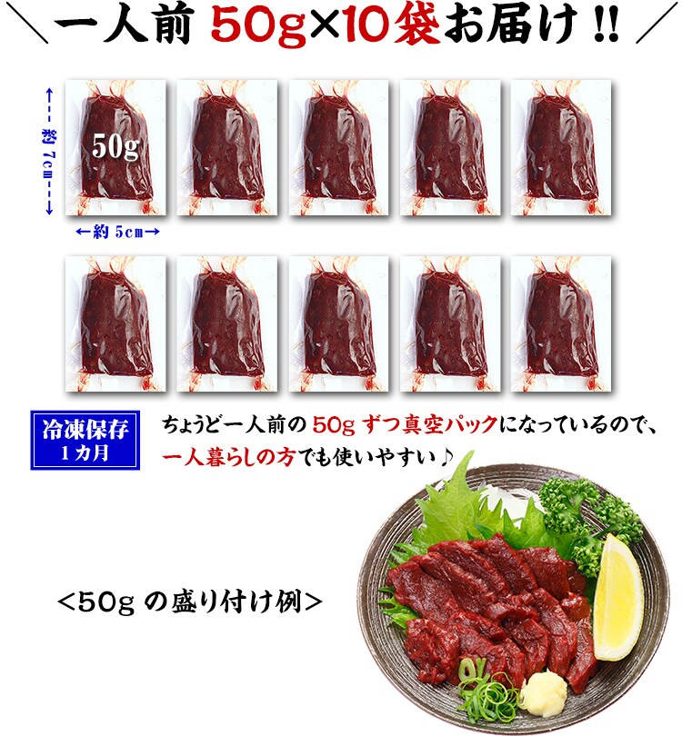 | 馬刺し赤身(カナダ、キューバ、メキシコ、アルゼンチン産)50g×10袋入り ※国内加工 |