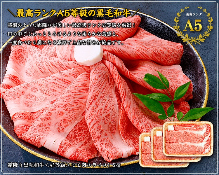 黒毛和牛A5等級のもも肉スライス1.5kg(500g×3p) |