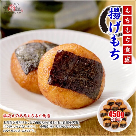 揚げもち 450g (15個入) 揚げ餅 餅 もち 醤油味 甘辛 のり付き もちもち ひとくち おやつ おつまみ 冷凍 お餅 個包装 簡単解凍 レンジOK 和菓子 米粉 かつお 昆布 国産原料 手軽 ストック パーティー