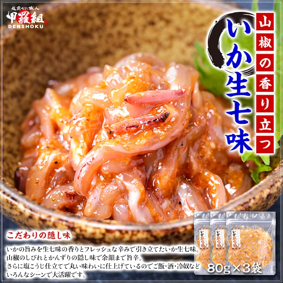 いか生七味 80g×3袋 いか 生七味 七味唐辛子 唐辛子 山椒 かんずり 塩こうじ 発酵 珍味 おつまみ ご飯のお供 冷奴 きゅうり