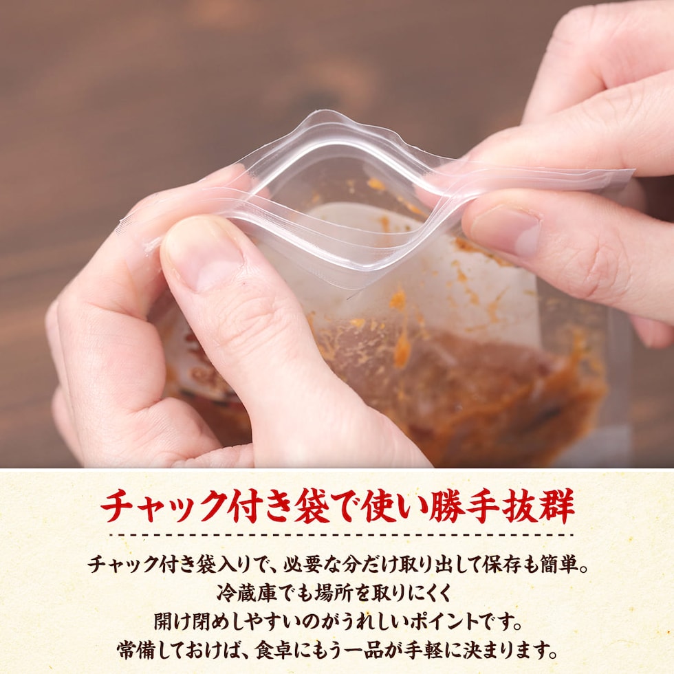 白ごはんはもちろん、晩酌のお供、冷奴やきゅうり、温野菜にのせるだけで手軽に一品が完成。