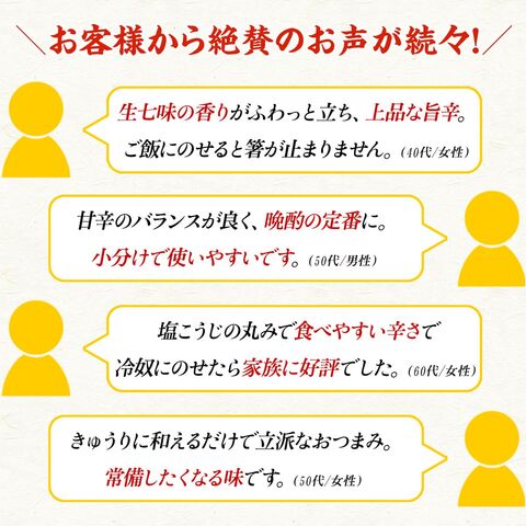 いか生七味 80g×3袋 いか 生七味 七味唐辛子 唐辛子 山椒 かんずり 塩こうじ 発酵 珍味 おつまみ ご飯のお供 冷奴 きゅうりのレビュー