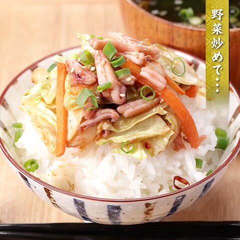 <原材料>いか(ロシア産)、塩こうじ、食塩、砂糖、かんずり、生七味、還元水飴、豆板醤、ゆず果汁、食酢、山椒/調味料(アミノ酸等)、pH調整剤、増粘多糖類、ソルビット、(一部にいか・ごまを含む)