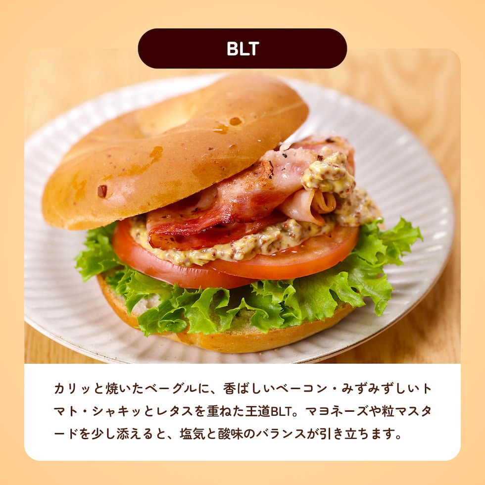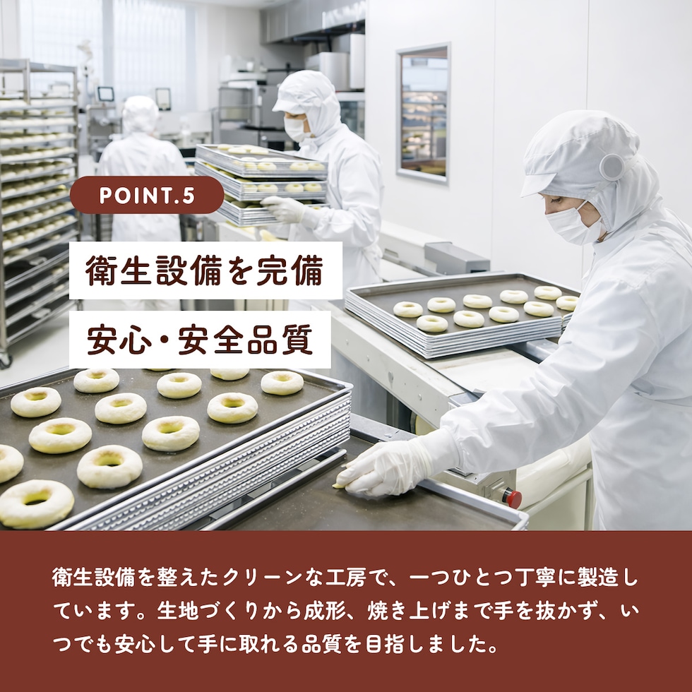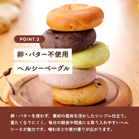 ベーグル生地には、卵・バター・油を使っていないのでとってもヘルシー。もちろん、卵アレルギーをお持ちの方も、安心してお召し上がりいただけます。