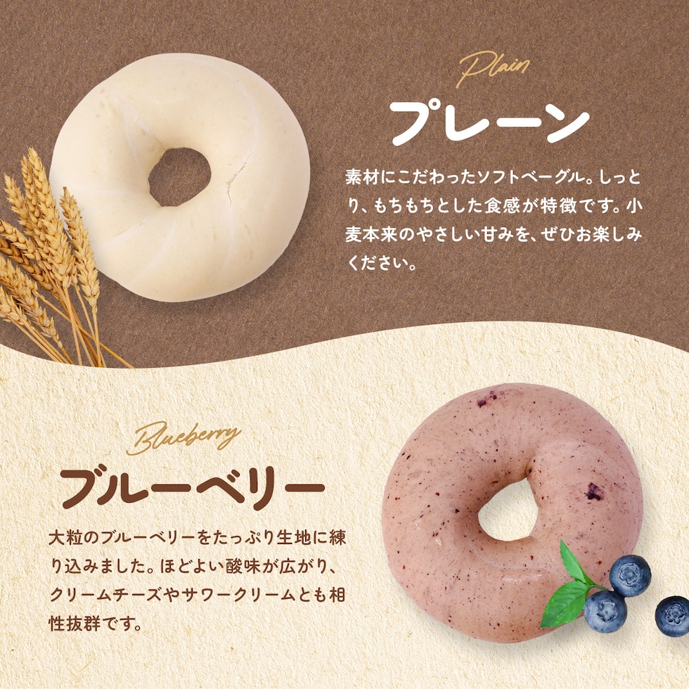 素材にこだわったルコラオリジナルのソフトベーグル。しっとりもちもちの食感が特徴です。小麦本来の甘みをお楽しみください。