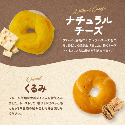 プレーン生地にナチュラルチーズをトッピングして、香ばしく焼き上げました。トーストすると一層おいしくいただけます。