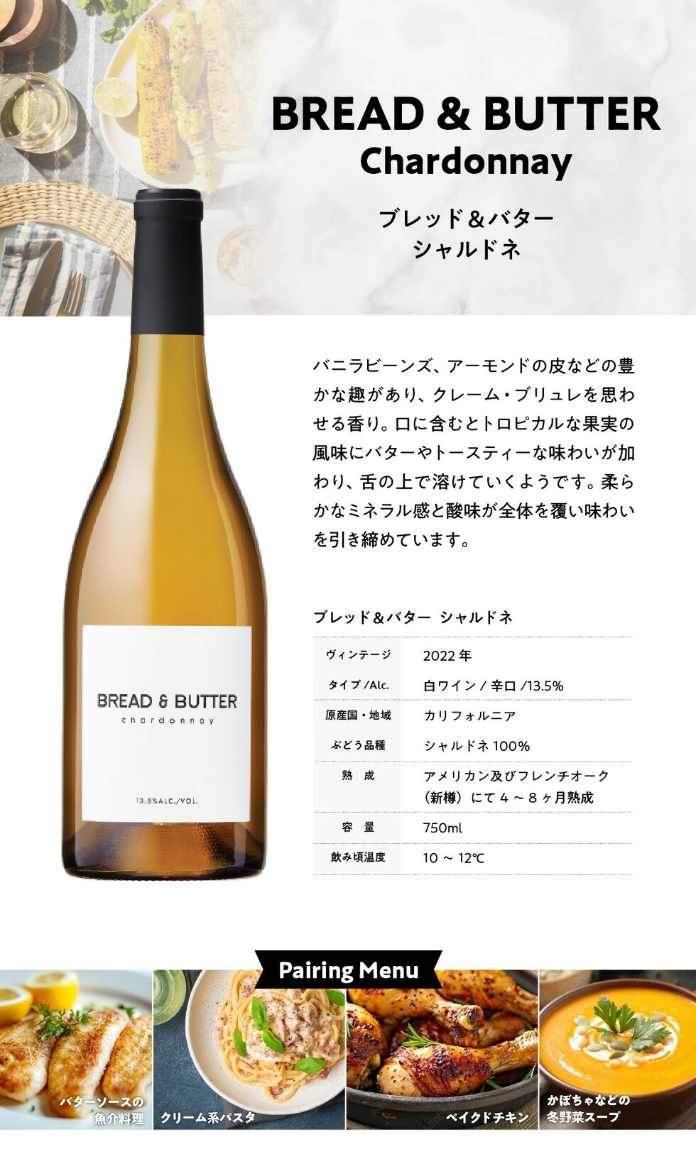 ブレッド&バター シャルドネ ペアリングギフト サラミ or チーズを選べるおつまみ付【a.サラミは12/12以降発送】 ワイン 白 白ワイン 贈り物 化粧箱 ブレッドアンドバター Bread&Butter Chardonnay 750ml bread & butter お祝い プレゼント 誕生日