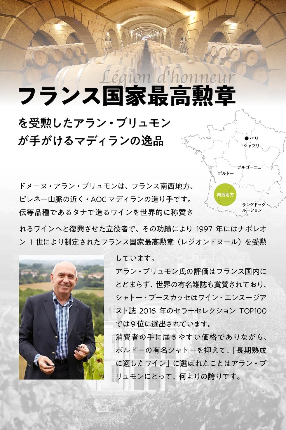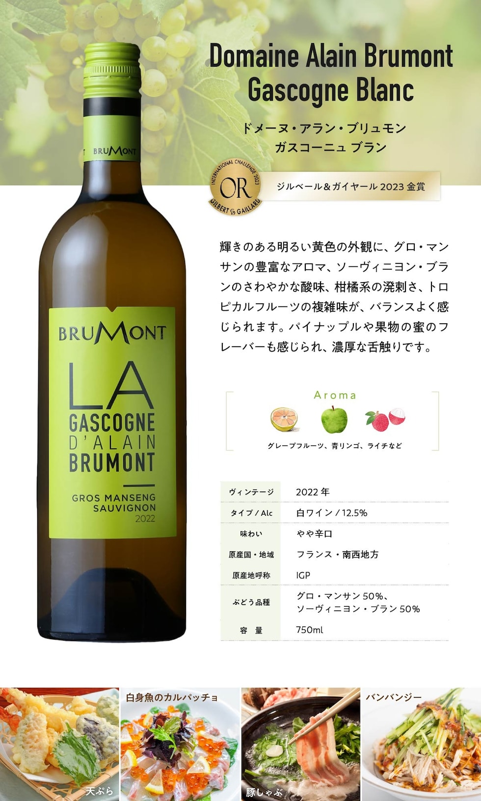 | グロ・マンサン50%、ソーヴィニヨン・ブラン50% |