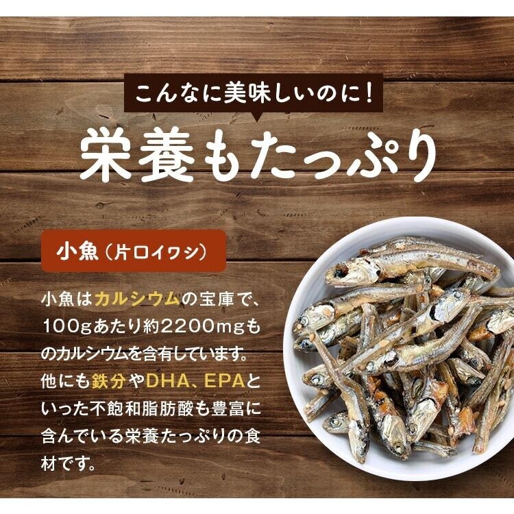 少し甘く味付けされた「いりこ(片口いわし)」と、香ばしくローストされた「アーモンド」が絶妙バランスの学校給食でおなじみの昔ながらの健康お菓子をご紹介!美味しさはもちろんのこと、カルシウムやDHA、不飽和脂肪酸(リノール酸&オレイン酸)など、小さなお子様からご年配の方に必要な栄養満点です。また、よく噛むことでダイエットや健康効果も期待できます。 |