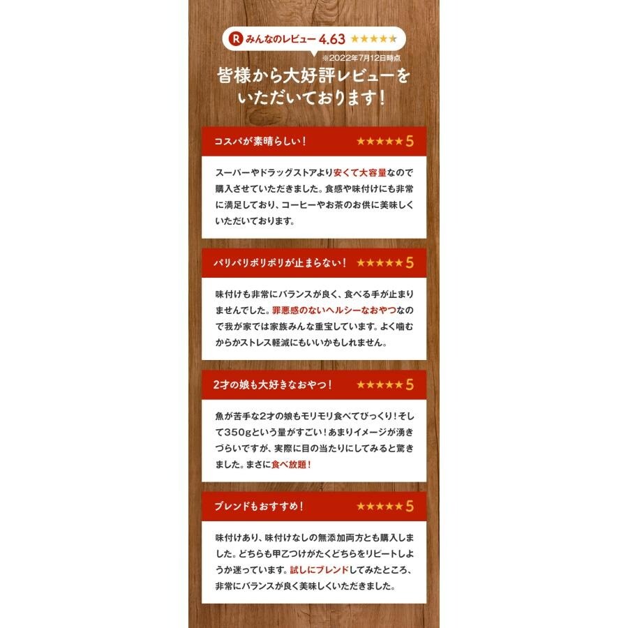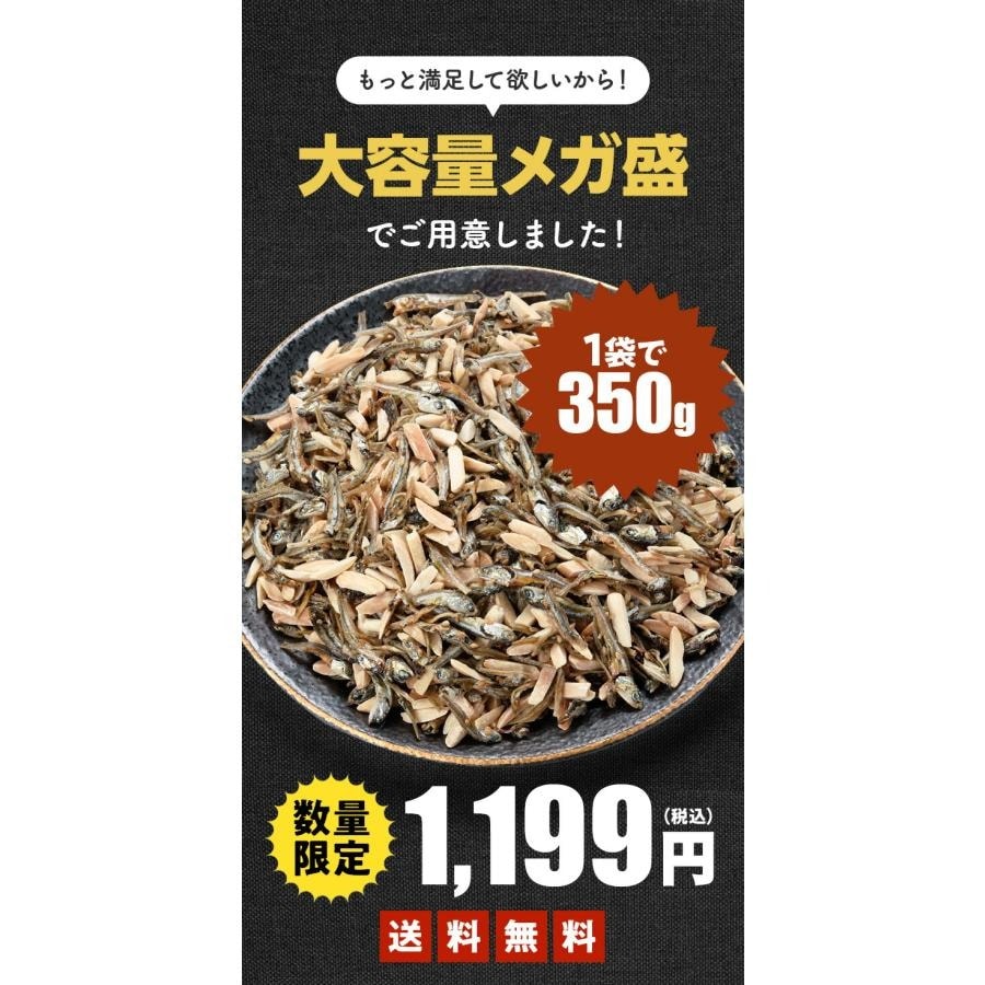 | いりこ&アーモンド/300g <原材料名>ローストアーモンド(アーモンド(米国))、いわし煮干し(国内製造)、砂糖、ごま、香辛料、(一部にアーモンド・ごまを含む) ※本製品製造工場では 小麦・卵・乳製品・えび・くるみ を含む製品を製造しております。 |