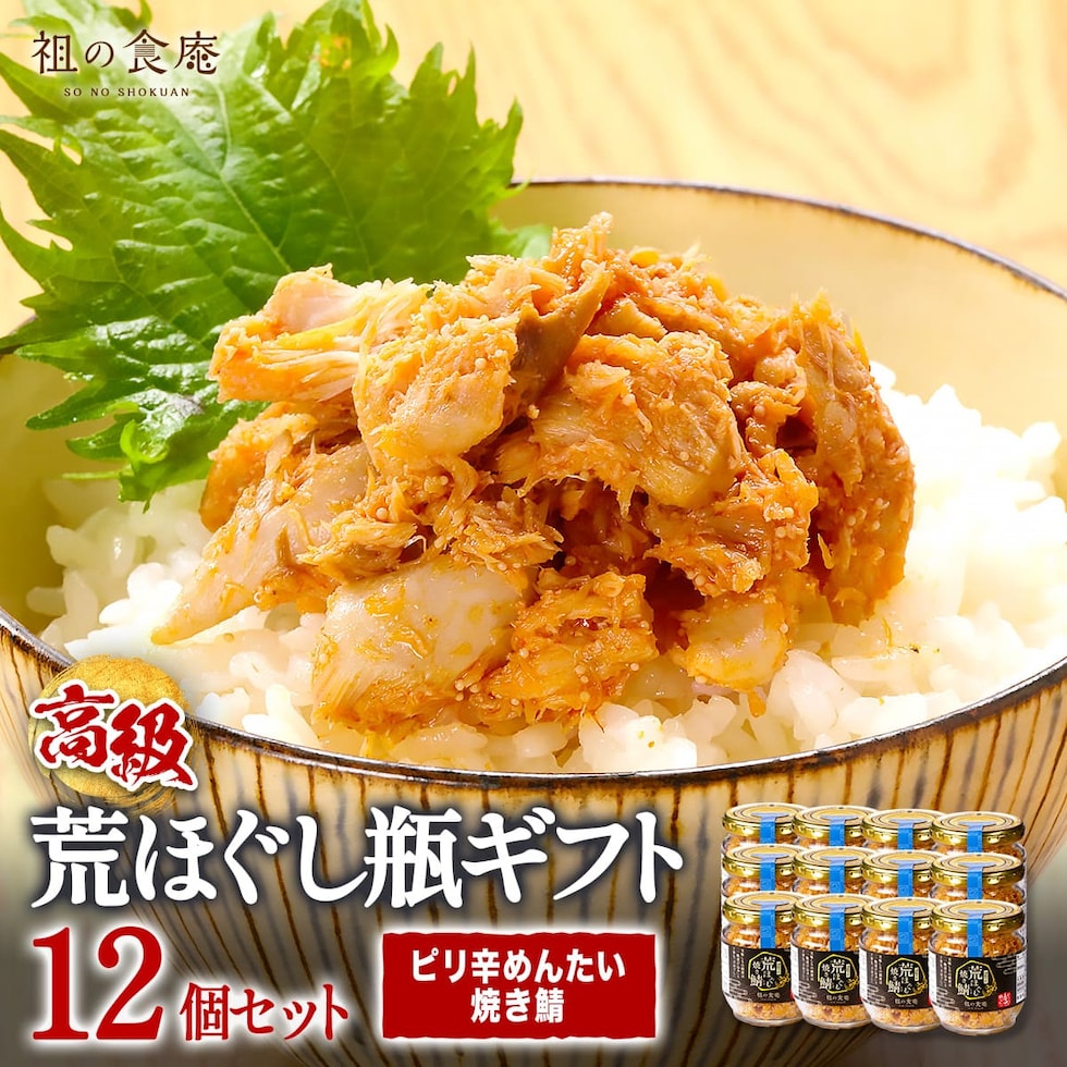 【高級】荒ほぐし瓶 12個セット【明太鯖】 焼き鯖 紅鮭 焼きホッケ 天然鮪 明太鯖 明太鮪 フレーク 鯖 鮪 ギフト お中元 御中元 プレゼント