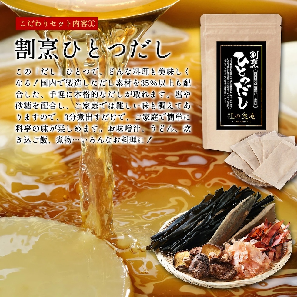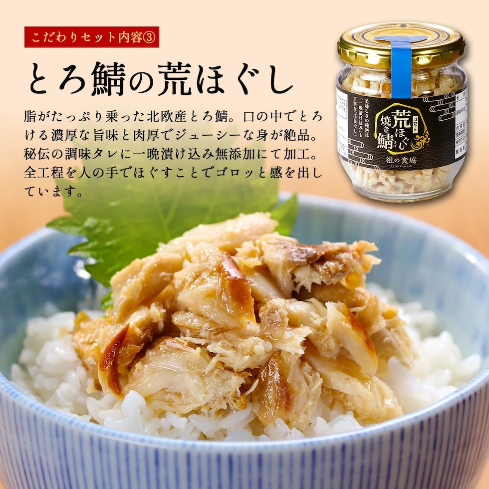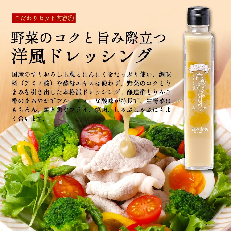 | 【1】割烹ひとつだし この「だし」ひとつで、どんな料理も美味しくなる!国内で製造しただし素材を35%以上も配合し、豊かな香りを実現した、手軽に本格的なだしが取れるだしパックです。塩や砂糖を配合し、ご家庭では難しいだしの味も調えてありますので、ティーバッグを3分煮出すだけで、ご家庭で簡単に料亭の味が楽しめます。お味噌汁、うどん、炊き込みご飯、煮物…和風料理全般にご利用頂けます。 【2】天然紅鮭の荒ほぐし 天然ならではの鮮やかな赤身と引き締まった身質が特徴です。振り塩やシーズニングではなく、秘伝の調味タレに一晩漬け込み無添加にて加工。また、全工程を人の手でほぐすことでゴロッと感を出しています。 【3】天然とろ鯖の荒ほぐし 脂がたっぷり乗った北欧産とろ鯖。口の中でとろける濃厚な旨味と、肉厚でジューシーな身が絶品です。振り塩やシーズニングではなく、秘伝の調味タレに一晩漬け込み無添加にて加工。また、全工程を人の手でほぐすことでゴロッと感を出しています。 【4】野菜のコクと旨み際立つ洋風ドレッシング 国産のすりおろし玉葱とニンニクをたっぷりと使い、調味料(アミノ酸)や酵母エキス等は使わずに、野菜のコクとうまみをしっかり引き出した本格派のドレッシングです。醸造酢の他にリンゴ酢も使用する事でまろやかでフルーティーな酸味で、野菜嫌いのお子様にもオススメ!生野菜はもちろん、焼き魚やフライ、焼肉、しゃぶしゃぶなど、なんでも合う万能ドレッシングです。 【5】すりおろし国産にんじんドレッシング 国産にんじんペーストをベースに玉ねぎ、リンゴ果汁、更にフルーツのチャツネを加えて甘味に深みを出しました。酸味にはお酢の他にレモン果汁を加える事によりフルーティーで爽やかな酸味を演出。更に国産昆布だしとしいたけだしを入れることで深みのあるうま味を引き出しています。 |