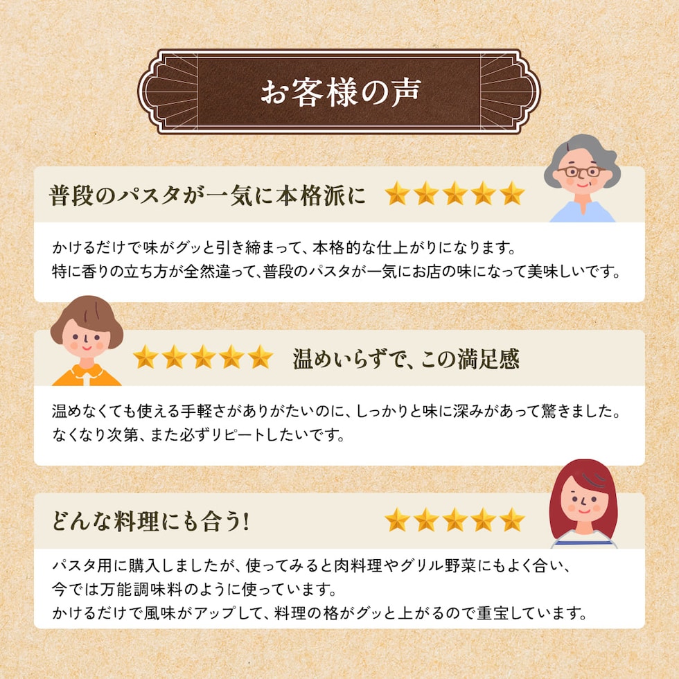 ◎手軽に本格パスタの味わいが楽しめる ◎芳醇な黒トリュフの香り ◎香り高いポルチーニ茸の旨み ◎100g入で使い切りサイズ ◎温め不要でかけるだけ♪ ◎常温保存でとにかく便利 芳醇な黒トリュフと香り高いポルチーニの旨みが味わえるクリームソースセット。温め不要でそのままかけるだけで本格レストランの味わいをお楽しみいただけます。1袋100gと使い切りサイズで常温で保存できるため使い勝手がよく、ストックしておきたい商品です。パスタソースだけでなく、お肉やオムレツとも相性が良く、豊かな香りとコクをご堪能いただけます。いつもの食卓を少し贅沢にするクリームソースを是非ご賞味ください。 |