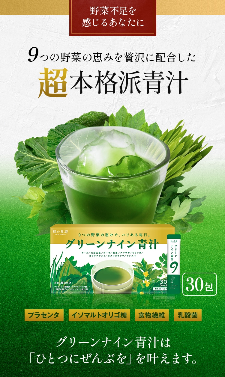 野菜不足解消に超本格青汁!「グリーンナイン青汁」3g×30包入り(約1ヵ月分)サプリ 美容 ダイエット 健康志向 野菜不足解消 腸内環境改善 ケール 大麦若葉 ゴーヤ モリンガ ミネラル 年末年始