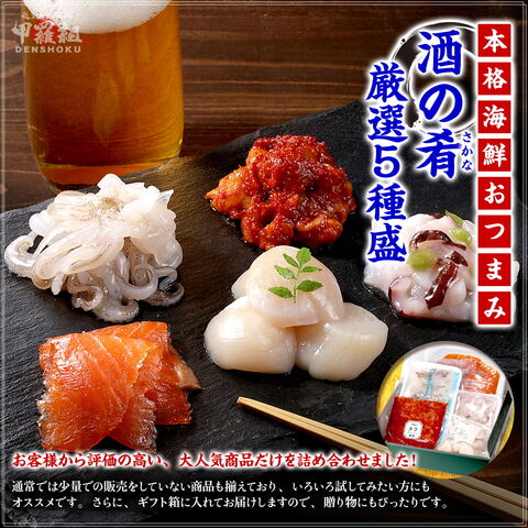 酒の肴 厳選5種盛 海鮮 詰め合わせ スモークサーモン チャンジャ ヤリイカ ゲソ ホタテ たこ タラ 肴 つまみ おつまみ セット お取り寄せ 晩酌 珍味 ギフト 父の日 母の日 喜寿 米寿 祝 誕生日 魚 贈り物 年末年始 お歳暮 冬ギフト