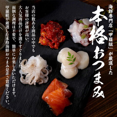 | ◎海鮮専門店「甲羅組」で愛される「酒の肴」の盛り合わせ! ◎お客様の評価が高い鉄板おつまみだけを厳選 ◎化粧箱入なので、大切な方への贈り物にもピッタリ ◎解凍するだけ!面倒な調理は一切不要 ◎海鮮専門店のおつまみで、日々の晩酌をより贅沢に 海鮮専門店「甲羅組」が厳選した本格海鮮おつまみセット。 数ある商品の中でもお客様の評価が高い、大人気商品だけを選りすぐりました。 ノルウェーの厳しい審査を通過した原料で作られたスモークサーモン、お刺身鮮度の北海道産ミズダコを贅沢にカットしたたこわさび、本場韓国のタレを使ったタラチャンジャなど、原料からこだわり抜き、毎日の晩酌をワンランク贅沢にしてくれる逸品ばかりです。 さらに、ギフト箱に入れてお届けしますので、父の日や誕生日、記念日などの贈り物にしても喜ばれること間違いありません。 解凍してそのまま食べられる海鮮おつまみを厳選し、それぞれをちょうど良い量でお届けしますので、どなたでもお気軽にお試しいただける商品となっております。 甲羅組が厳選した本格海鮮おつまみを是非ご賞味ください。 |