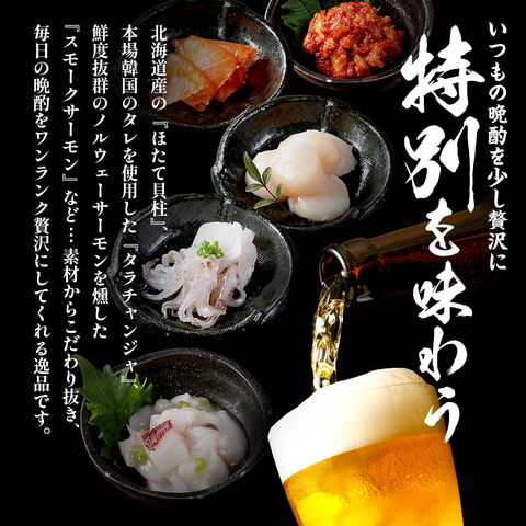 <原材料>ノルウェー産サーモントラウト(養殖)、食塩、砂糖 ◎本格タラチャンジャ(内容量 200g) <原材料>真鱈の胃袋(ノルウェー・アメリカ産)、唐辛子、ニンニク、生姜、コーンスターチ、いりこだしの素、牛肉味だしの素、胡麻油、発酵調味料、みりん、ごま、塩、砂糖、調味料(アミノ酸等)、酸味料、香料、香辛料抽出物(一部に小麦、乳成分、えびを含む) ◎やりいかゲソ(内容量 160g/20枚入) <原材料>ヤリイカ、食塩 ※産地:ベトナム、フォークランド、インドネシア(産地により、色みや見た目が異なる場合があります) ◎生ほたて貝柱(内容量 100g) <原材料>ホタテ(北海道産) ◎たこわさび(内容量 85g) <原材料>たこ(北海道産)、わさび茎、みりん、還元水飴、砂糖、食塩、アミノ酸液調味料、昆布エキス、わさび調味料、酵母エキス/ソルビトール、調味料(有機酸等)、トレハロース、増粘剤(加工デンプン、増粘多糖類)、香料、酸化防止剤(ビタミンC)、ミョウバン、乳化剤、酸味料、(一部に大豆・ゼラチンを含む) |