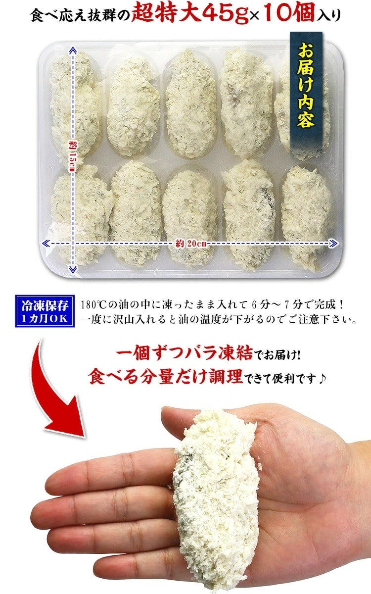 当店オリジナルの特注品!市販されていない超特大サイズの広島かきフライ45g×10個入り カキフライ 牡蠣フライ かきフライ 冷凍食品 年末年始