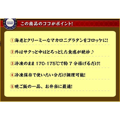 冷凍のまま170-175℃で約7分間揚げて下さい。 |