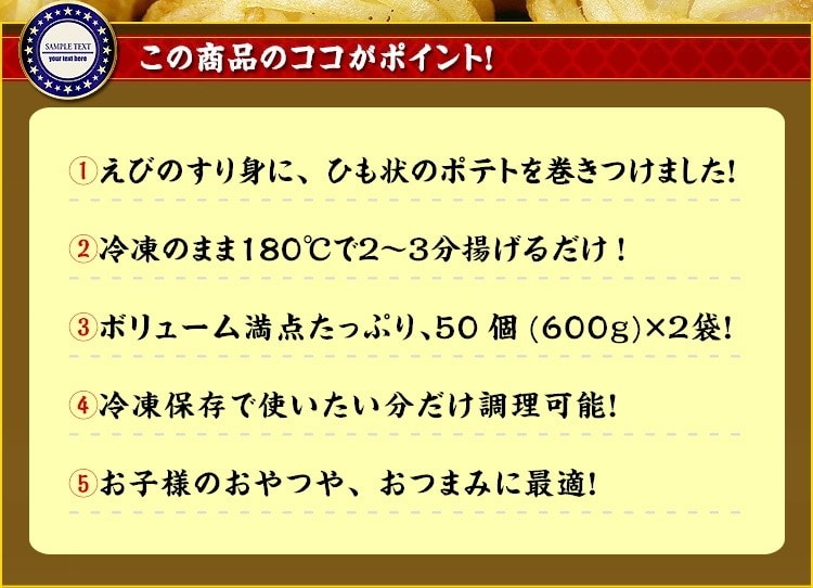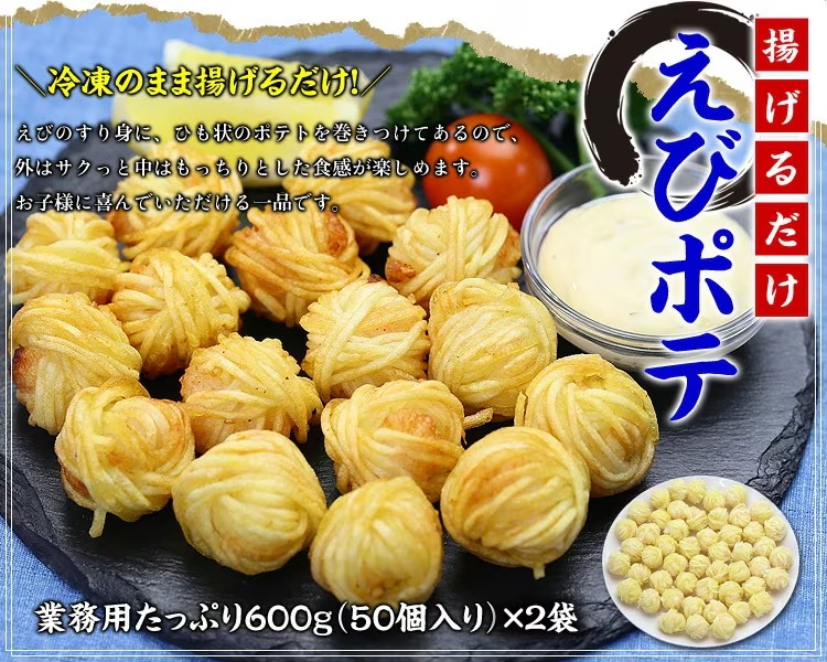 外はサクっと中はもっちり!えびポテ業務用1.2kg(600g×2パック)えび エビ 海老 ポテト 弁当 冷凍食品 年末年始 正月