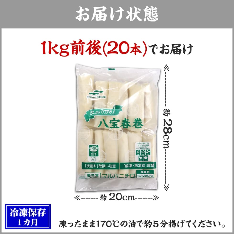 八宝春巻 業務用 1kg (20本) 春巻き 中華料理 中華 お弁当 惣菜 おかず パリパリ グルメ 食品 冷凍食品 マルハニチロ