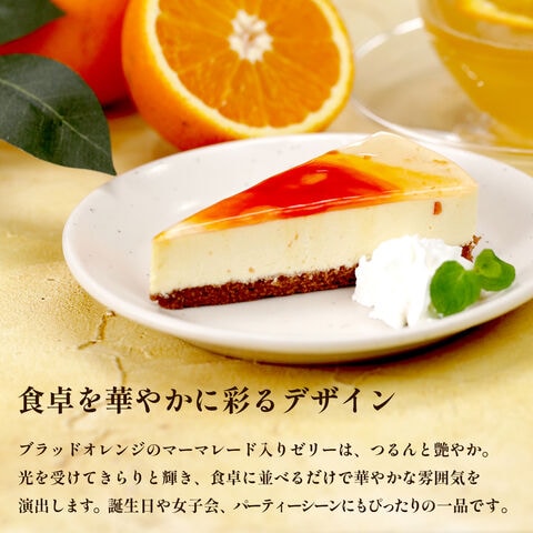 ◎愛媛県産ブラッドオレンジのマーマレード使用 ◎濃厚な甘み×すっきり酸味が、レアチーズと相性抜群 ◎つるんとしたゼリーと甘酸っぱいレアチーズで、爽やかな後味 ◎記念日・女子会・誕生日などのスイーツにおすすめ ◎冷凍保存OK。食べたい時に解凍でき、急な来客にも便利 愛媛県産ブラッドオレンジのマーマレードを、レアチーズ生地と天面のゼリーに贅沢に混ぜ込みました。 ブラッドオレンジならではの濃厚な甘みと、キレのある酸味がレアチーズのコクを引き立て、後味はすっきり。 つるんとしたゼリーの口あたりと、甘酸っぱいレアチーズのハーモニーで、爽やかな風味をお楽しみいただけます。 凍ったままでもフォークがすっと入る、ひんやり濃厚なアイスムース仕立て。 半解凍でアイスのように、しっかり解凍でムースケーキのように――二通りの美味しさが楽しめます。 冷凍ケーキなので、好きなタイミングで解凍してお召し上がりいただけるのも魅力。急な来客時にも重宝します。 |