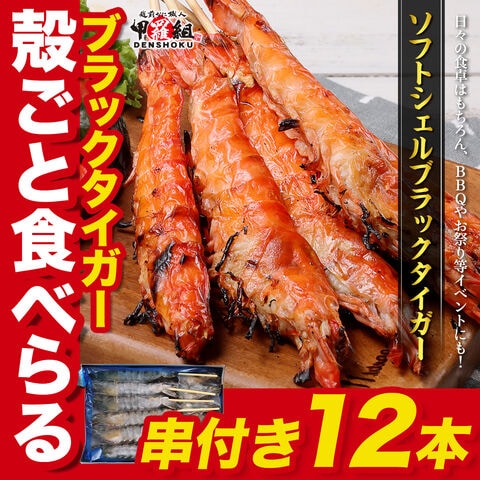 ソフトシェルブラックタイガー 串付き 300g 12本入り えび 海老 エビ 串 串焼き 海鮮 BBQ 串揚げ 冷凍食品 年末年始 正月 お歳暮